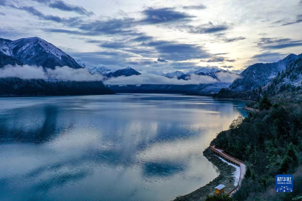 這是雪后拍攝的巴松錯(cuò)(無(wú)人機(jī)照片,2023年3月19日攝)。新華社記者姜帆 攝
