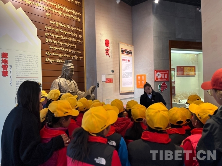 走進(jìn)“藏地智慧”,學(xué)生們一眼認(rèn)出藏文創(chuàng)始人吞彌·桑布扎,大家異口同聲回答講解員的問(wèn)題說(shuō):“這是吞彌·桑布扎?!钡玫街v解員的肯定、并向他們講述背后的相關(guān)歷史后,學(xué)生們聽(tīng)得很入迷,也更有信心面對(duì)接下來(lái)的問(wèn)題。藏文的信息化使得這一古老文字煥發(fā)著全新而旺盛的生命力,在這里學(xué)生們欣賞藏文在智能手機(jī)、電腦、多功能點(diǎn)讀機(jī)等智能電子設(shè)備內(nèi)“走動(dòng)”、傳統(tǒng)農(nóng)牧業(yè)的模擬場(chǎng)景和現(xiàn)代化的機(jī)械設(shè)備圖、藏醫(yī)藥材、藏香藏紙制造和制鹽過(guò)程等獨(dú)具特色的藏族傳統(tǒng)手工藝,也能很好的回答講解員提出的問(wèn)題,現(xiàn)場(chǎng)互動(dòng)氣氛熱烈?!斑@種活動(dòng)我們學(xué)校不會(huì)常有,當(dāng)孩子們聽(tīng)到要去拉薩時(shí)像是要過(guò)年那樣高興,一路上問(wèn)這問(wèn)那地充滿好奇?!倍喟奏l(xiāng)小學(xué)的帶隊(duì)老師羅珍介紹:“這次參加活動(dòng)的這些學(xué)生都是三、四、五年級(jí)的學(xué)生,個(gè)個(gè)品學(xué)兼優(yōu)?!?/p>