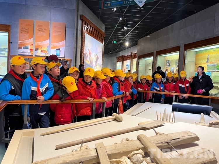 圖為學(xué)生們?cè)趨⒂^農(nóng)事用具 攝影:德吉卓瑪