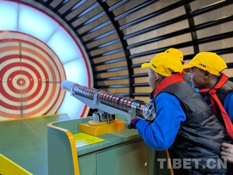 在講解員的帶領(lǐng)下學(xué)生們來(lái)到科技館,這里包括藏地智慧、科技樂(lè)園、科技前沿、體驗(yàn)世界屋脊等4個(gè)主題展區(qū),主要展示古老的西藏科技智慧、人類(lèi)取得的科技成就及基礎(chǔ)科學(xué)知識(shí)、科技促進(jìn)人類(lèi)的發(fā)展及西藏的開(kāi)發(fā)建設(shè)、西藏高原生存環(huán)境的內(nèi)容。