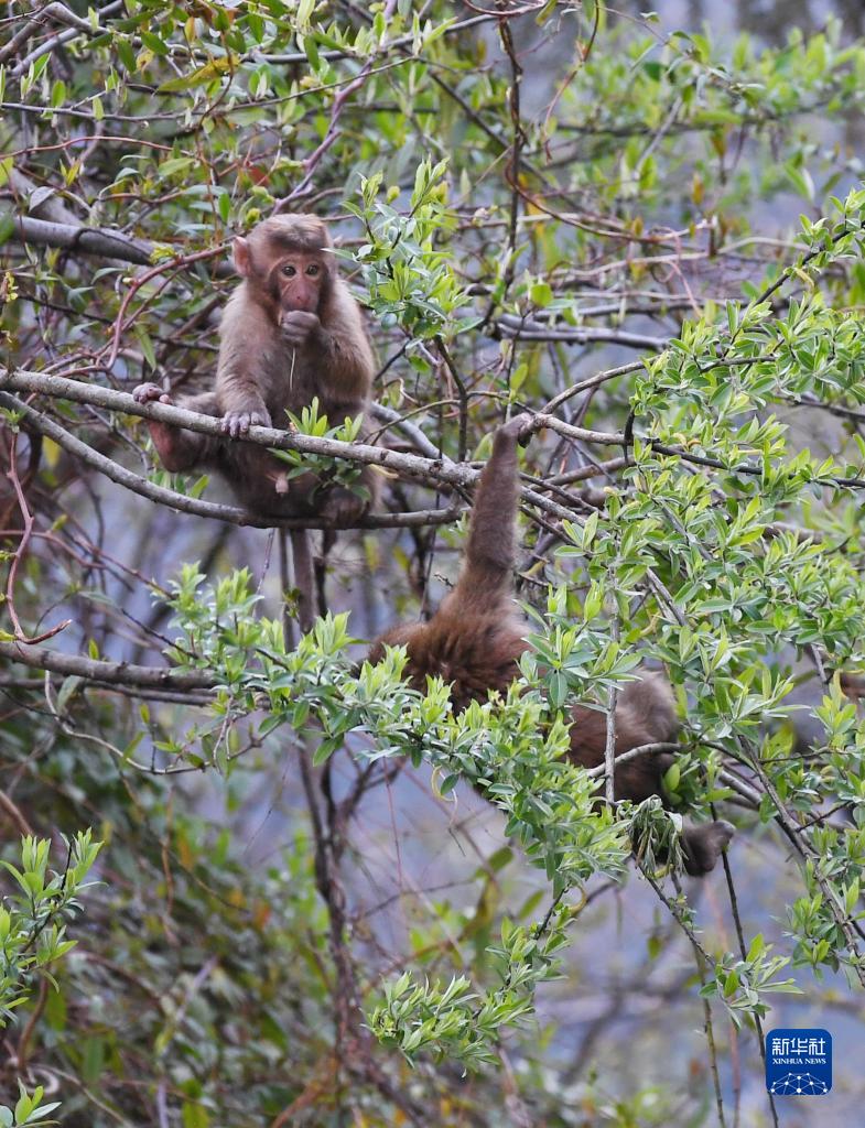 勒布溝里的獼猴(4月25日攝)。新華社記者 劉洪明 攝