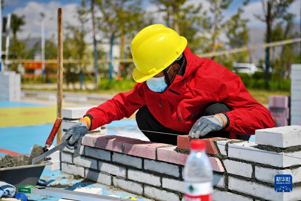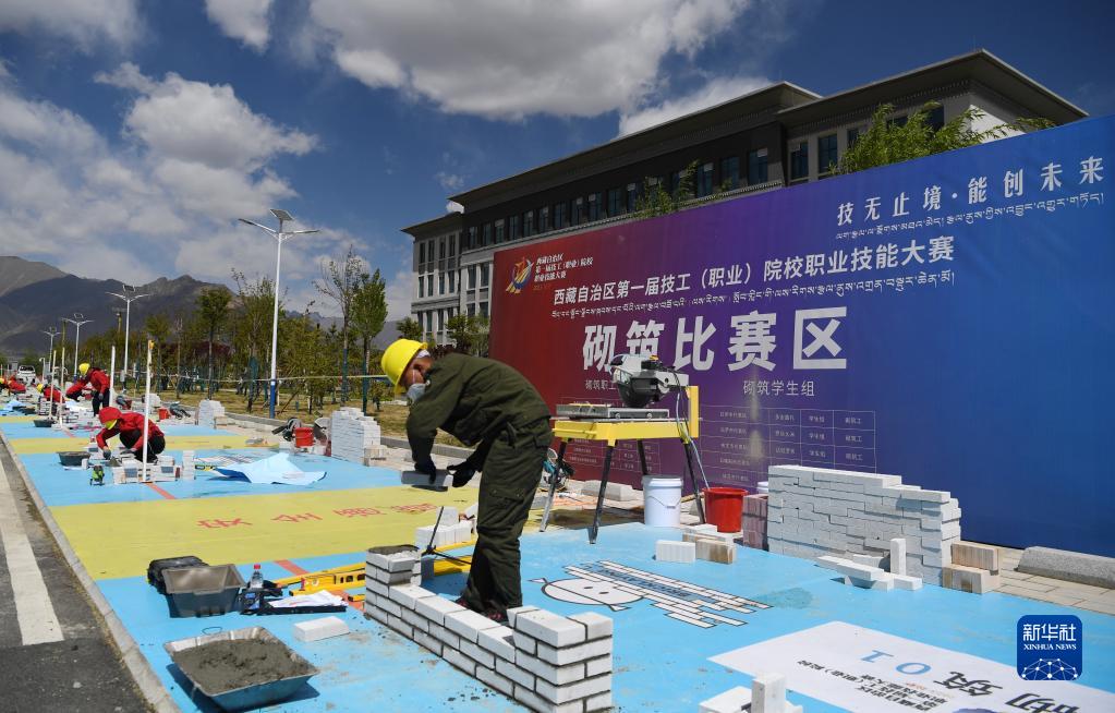 5月10日拍攝的西藏自治區(qū)第一屆技工(職業(yè))院校職業(yè)技能大賽砌筑比賽現(xiàn)場。新華社記者 張汝鋒 攝
