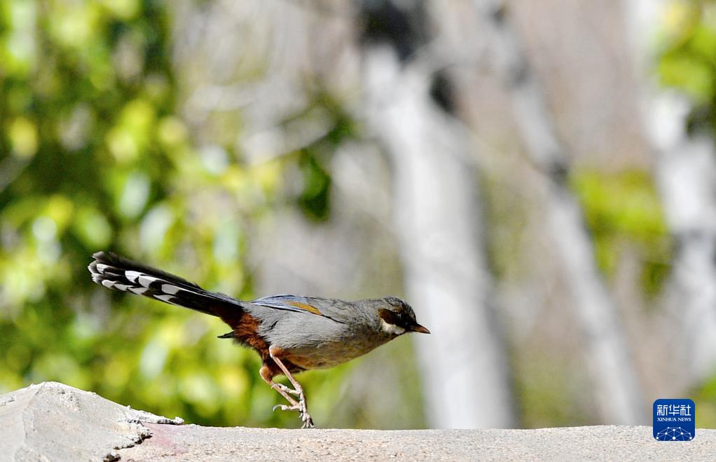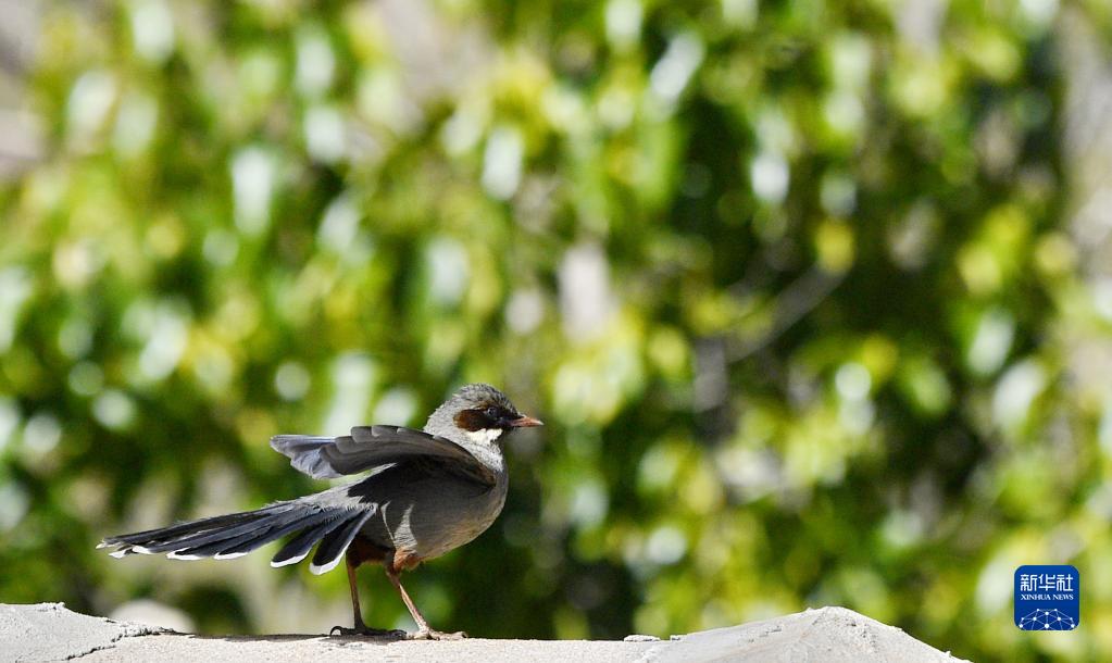 這是在拉薩市城關(guān)區(qū)蔡公堂街道次角林村拍攝的灰腹噪鹛(5月14日攝)。新華社記者 張汝鋒 攝