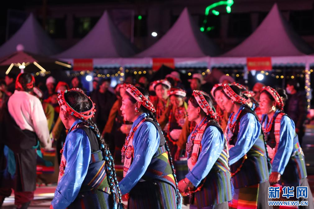 7月23日,在西藏定日2023珠峰音樂美食節(jié)現(xiàn)場,民間藝術(shù)團(tuán)表演國家級非物質(zhì)文化遺產(chǎn)定日洛諧。新華網(wǎng)發(fā) 李騰 攝