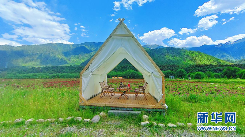“游客在這里不僅可以賞花、采摘,還能體驗(yàn)露營、親子樂園、燒烤等娛樂項(xiàng)目。”工布花谷農(nóng)業(yè)觀光生態(tài)園負(fù)責(zé)人李磊介紹道,“園區(qū)除了支付朵當(dāng)村土地租金,還雇了不少村民在這里工作?!?/p>
