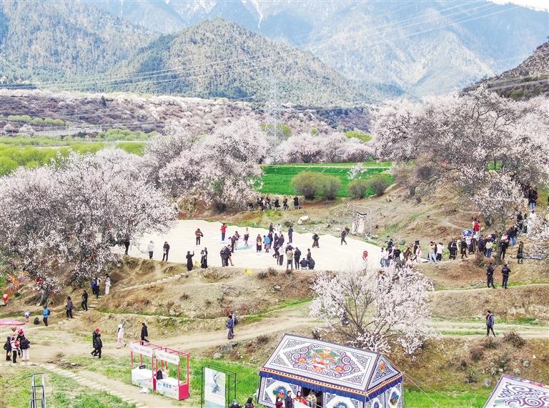 東風吹皺尼洋河的綠波,桃花粉黛染遍藏東南的山坡。4月3日,為期一個月的林芝第二十二屆桃花旅游文化節(jié)如約而至,吸引五湖四海的游客踏春而來。林芝市以花為媒,精心籌備,將“寵愛游客”這條主線貫穿始終,動員全市各縣(市、區(qū))各界力量,精心推出花車巡游、“桃花仙子”評選、大峽谷賞花、非遺打鐵花、書畫聯(lián)展、無人機表演、“你好桃花”音樂嘉年華、特色產(chǎn)品展銷、“春分桃夭”免費美食體驗等累計40余項精彩活動,涵蓋“吃喝玩樂游購娛”等游客興趣所及的方方面面,主打一個賞花游園的氛圍感、熱鬧勁兒,讓廣大游客來到林芝、愛上林芝,傳遞林芝的美麗、感受林芝人民的熱情。圖片均由 劉楓 謝筱純 攝