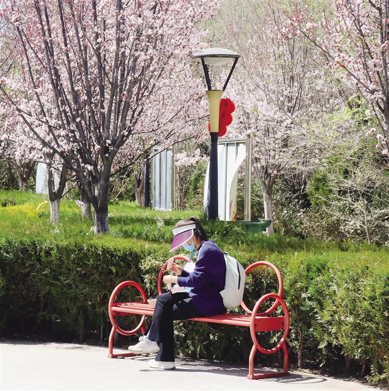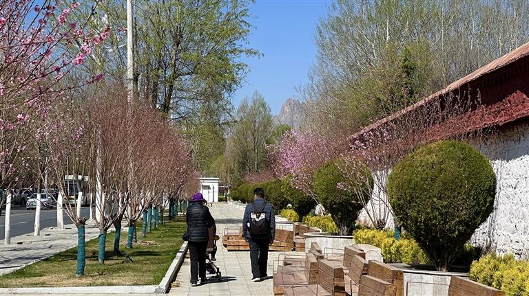 春日的拉薩,從不缺漫步曬太陽、賞花的路線。城北的街道,早已披上了春日的花衣。娘熱北路、慈松塘中路、慈松塘東路一帶,馬路兩側(cè)的花木被春季染上新的碧綠與粉紅,就連公交車站都被花朵裝點得格外浪漫。