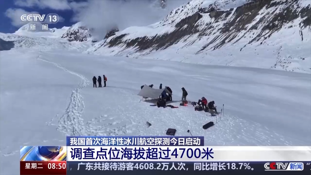總臺央視記者楊瀟一直跟隨調(diào)查隊進行冰川探測。