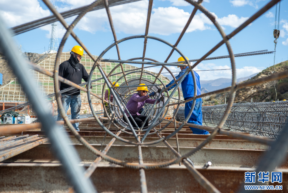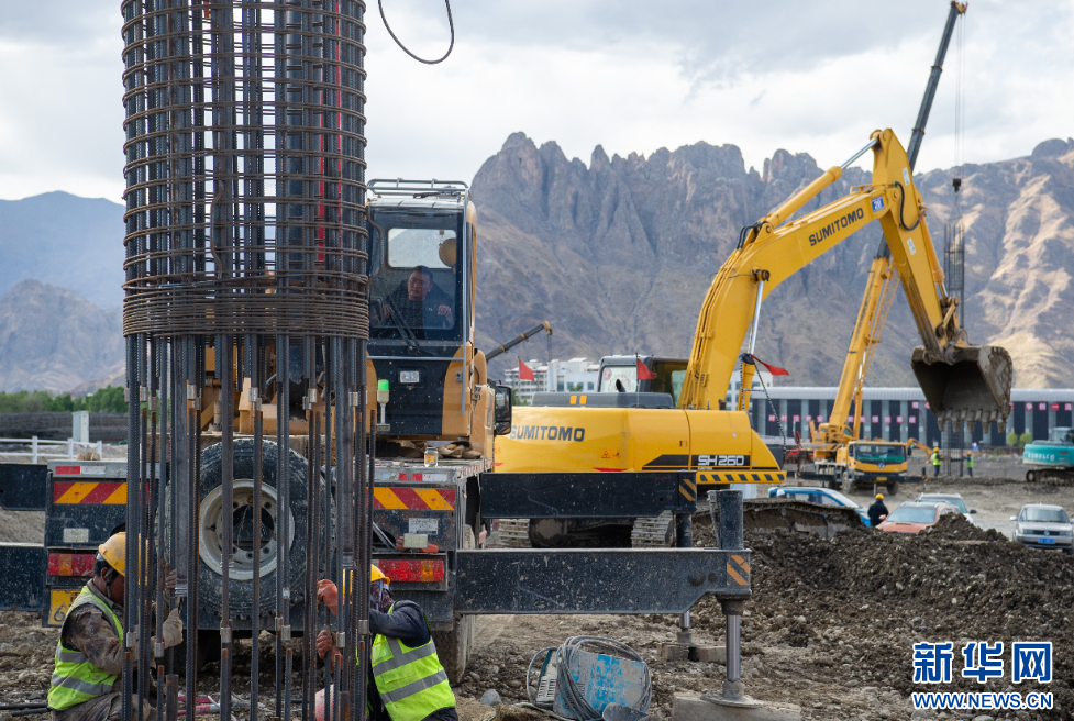 這是5月12日拍攝的拉薩高新大橋施工現(xiàn)場。新華網(wǎng) 旦增努布 攝