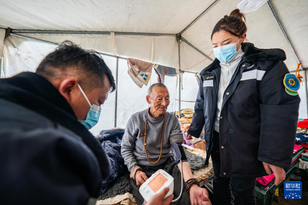 在那曲市索縣西昌鄉(xiāng),衛(wèi)生院醫(yī)務(wù)人員為蟲草采集點的牧民測量血壓(5月18日攝)。新華社記者 丁增尼達(dá) 攝 ??