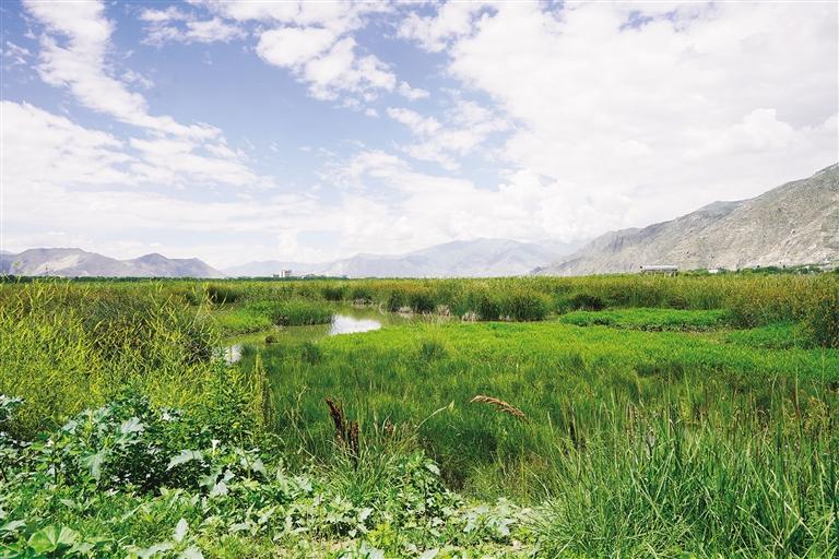 五月的拉薩,雨水濕潤(rùn)了整個(gè)大地。早晨的陽(yáng)光透過(guò)層層云霧,灑在郁郁蔥蔥的拉魯濕地上。她仿佛一位佳人,身披翠綠的薄紗,靜靜地佇立在那里,等待著人們與她在初夏撞個(gè)滿懷。