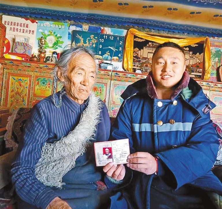 趙鵬飛(右)采訪上倉貢瑪村赤腳醫(yī)生格桑旺扎(左)。