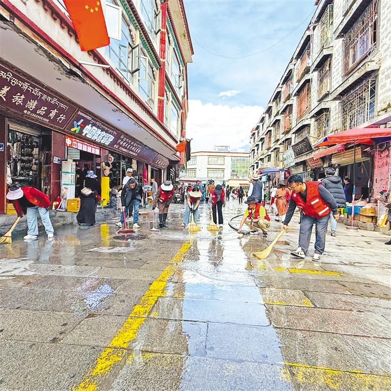 近日,拉薩市城關(guān)區(qū)八廓街道沖賽康社區(qū)黨總支開(kāi)展“黨建引領(lǐng)聚合力,清潔家園促文明”環(huán)境整治活動(dòng)。30余名黨員志愿者、駐社區(qū)工作隊(duì)員及網(wǎng)格員分工協(xié)作,手持清潔工具深入大街小巷,清理衛(wèi)生死角、鏟除墻面小廣告,并對(duì)廣場(chǎng)地面進(jìn)行高壓沖洗?;顒?dòng)以“黨建紅”引領(lǐng)“生態(tài)綠”,推動(dòng)基層治理與文明城市創(chuàng)建深度融合,為社區(qū)居民營(yíng)造整潔宜居的生活環(huán)境。記者 央金 攝