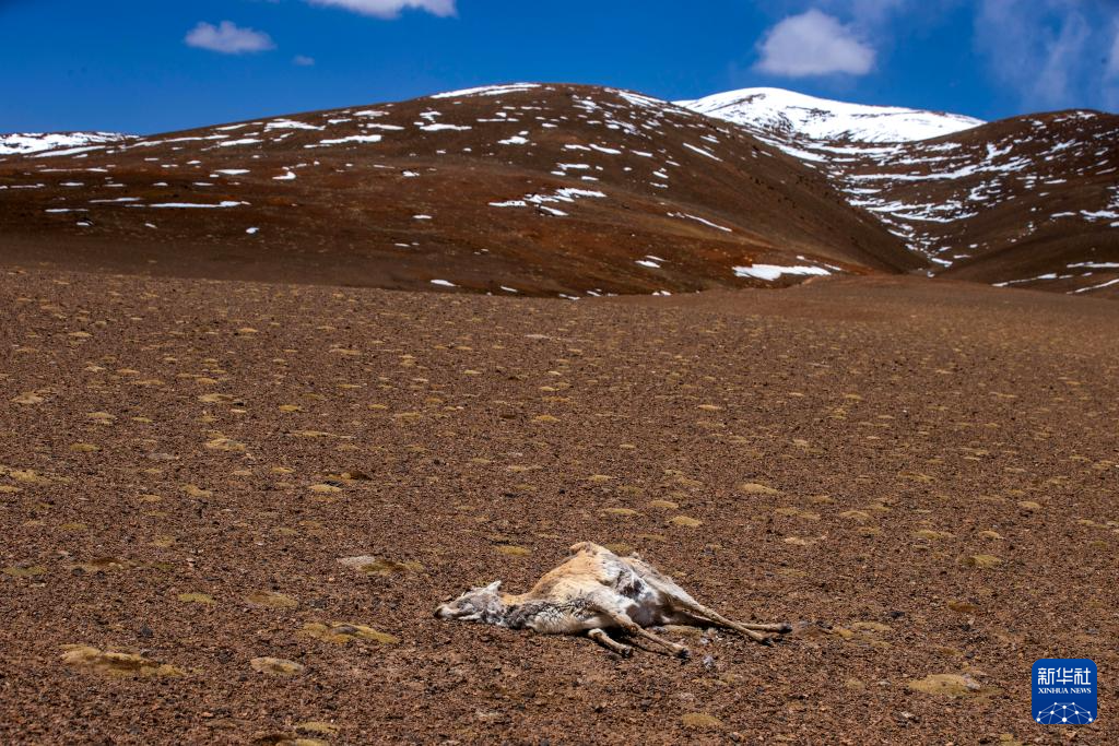 遷徙路上死于非命的一頭雌性藏羚羊(6月8日攝)。新華社記者 姜帆 攝 ??
