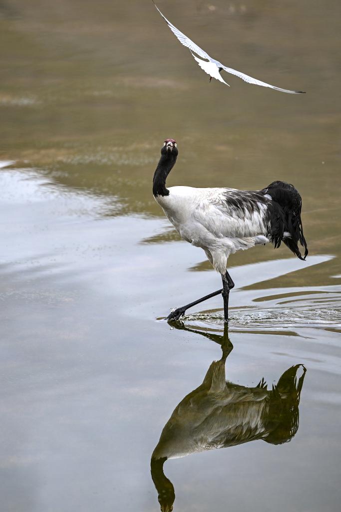 “潔白的仙鶴,請(qǐng)把雙翅借給我,不飛遙遠(yuǎn)的地方,到理塘轉(zhuǎn)一轉(zhuǎn)就會(huì)回?!边@首在西藏家喻戶曉的民歌中提到的“仙鶴”,就是黑頸鶴。