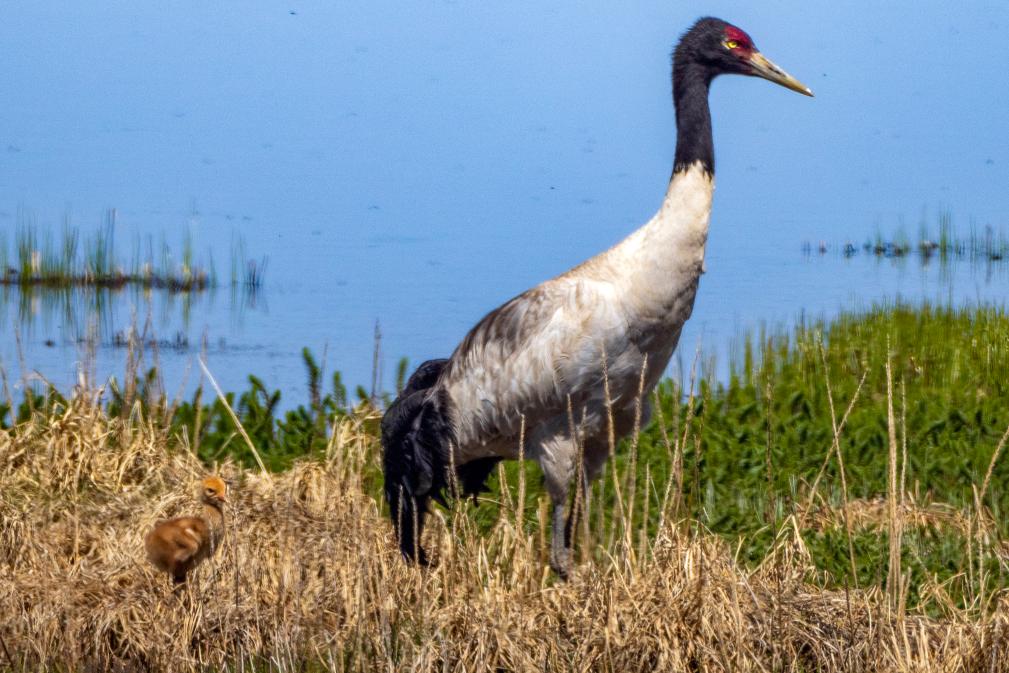 黑頸鶴生活在高原淡水濕地,是世界上唯一生長(zhǎng)、繁殖在高原的鶴類,也是國(guó)家一級(jí)保護(hù)動(dòng)物,有“高原仙子”的美稱。它們棲息于海拔2500到5000米的高原沼澤地、湖泊及河灘等濕地環(huán)境。喜食植物葉、根莖、塊莖、水藻、玉米、散落在收割過(guò)的田野里的青稞粒等,也吃昆蟲(chóng)、蛙、小魚(yú)等動(dòng)物性食物,其叫聲高亢而有穿透力。