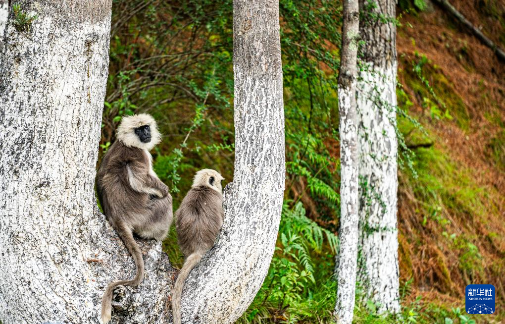 6月20日,在日喀則市亞?wèn)|縣,兩只長(zhǎng)尾葉猴在樹上休息。新華社記者 丁增尼達(dá) 攝