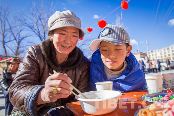 據(jù)拉薩市城關(guān)區(qū)組織聯(lián)歡活動的工作人員介紹,此次春節(jié)藏歷新年聯(lián)歡活動組織了社區(qū)內(nèi)的藏、漢、回等各族群眾同吃餃子和“古突”,互道祝福、共度佳節(jié),增進(jìn)了民族團(tuán)結(jié)和情誼。