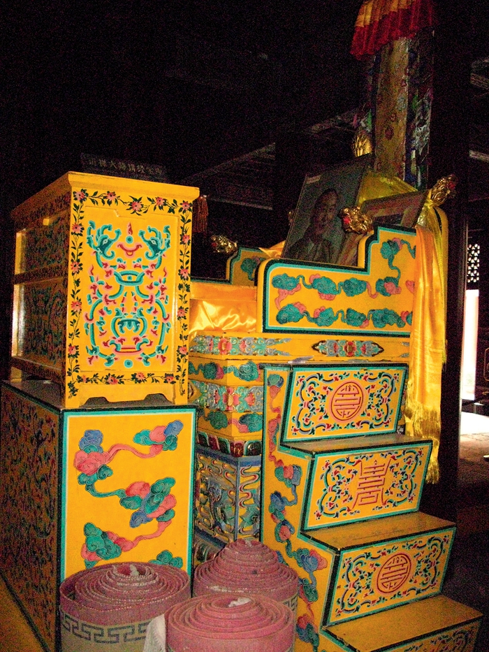 雍和宮法輪殿內(nèi)東側(cè)十世班禪大師講經(jīng)寶座。