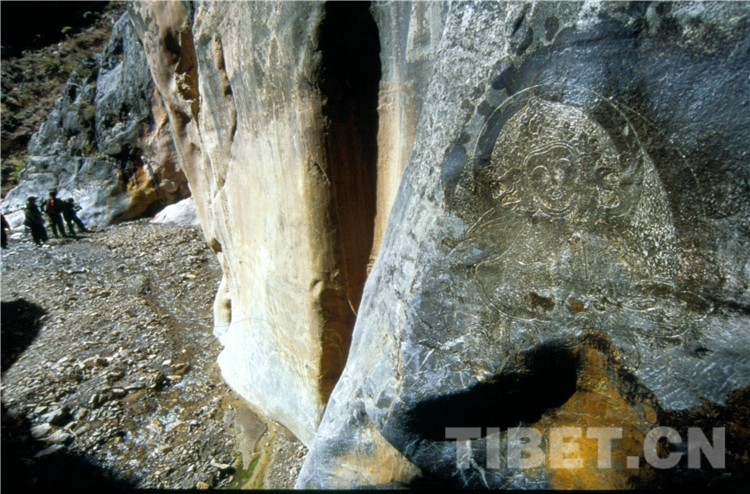 東壩地處峽谷底部,距離縣城85公里,其中最后的5公里道路極險,進入這5公里之前的標志是一個叫瓦多的村子,瓦多村有兩處寬 1 米左右、長 20 余米、高 100 米以上的險要關(guān)口。其中一個關(guān)口叫珠嘎,簡稱“困鷹關(guān)”。很久以前茶馬古道的一些支線從附近通過,留下了一些石刻和巖畫,有護法神、守門犬、佛像、門神、鎖、鑰匙、文字、地圖等。