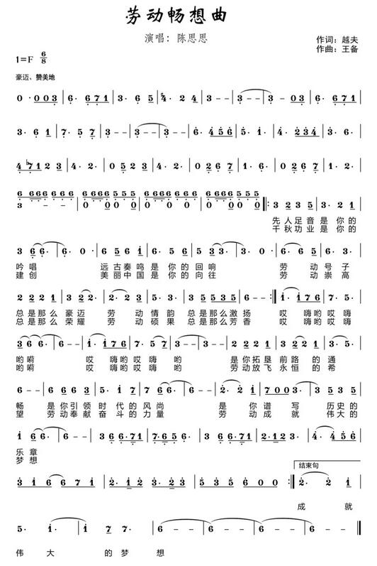 為慶祝2019年“五一”國際勞動節(jié),向新中國成立70周年獻禮,中華全國總工會組織力量專門為“五一”特別節(jié)目創(chuàng)作了主題歌《勞動暢想曲》。此作品采用藝術(shù)手法,深刻釋讀了勞動推動歷史發(fā)展,亦催生人類自身的科學(xué)真諦,熱情謳歌了勞動最光榮、勞動最崇高、勞動最偉大、勞動最美麗的社會風(fēng)尚,由衷抒發(fā)了對祖國和人民特別是對我們黨和工人階級的深厚情感。