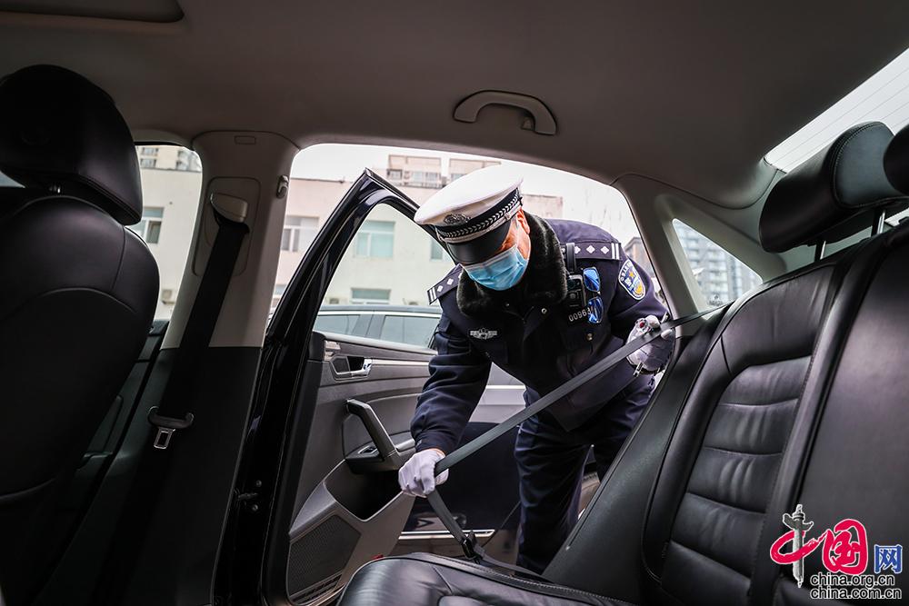 專業(yè)檢查人員逐一對車內(nèi)安全帶進行檢查并記錄。中國網(wǎng)記者 鄭亮攝