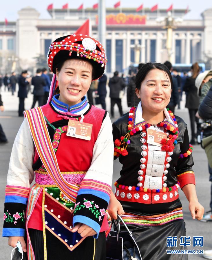 3月8日,十三屆全國(guó)人大四次會(huì)議在北京人民大會(huì)堂舉行第二次全體會(huì)議。這是兩位女代表走向會(huì)場(chǎng)。新華社記者 賀長(zhǎng)山 攝