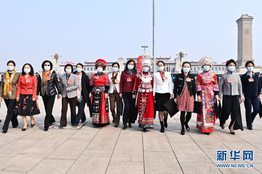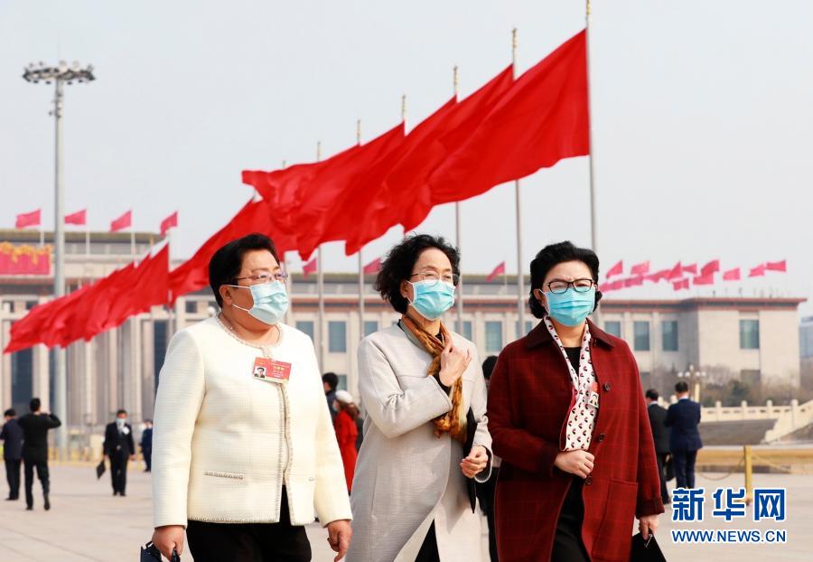 3月8日,十三屆全國(guó)人大四次會(huì)議在北京人民大會(huì)堂舉行第二次全體會(huì)議。這是女代表們走向會(huì)場(chǎng)。新華社記者 王南 攝