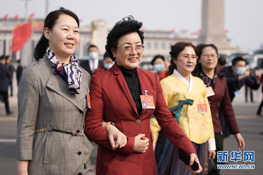 3月8日,十三屆全國(guó)人大四次會(huì)議在北京人民大會(huì)堂舉行第二次全體會(huì)議。這是女代表們走向會(huì)場(chǎng)。新華社記者 賀長(zhǎng)山 攝