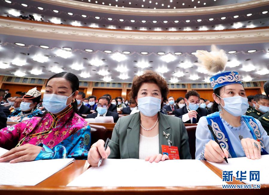 3月8日,十三屆全國(guó)人大四次會(huì)議在北京人民大會(huì)堂舉行第二次全體會(huì)議。這是幾位女代表在認(rèn)真聽(tīng)會(huì)。新華社記者 丁林 攝