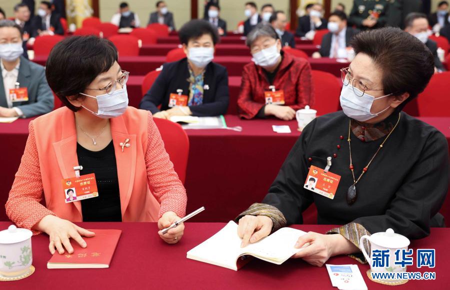 3月6日,三位女代表在駐地交流。新華社記者 溫競(jìng)?cè)A 攝