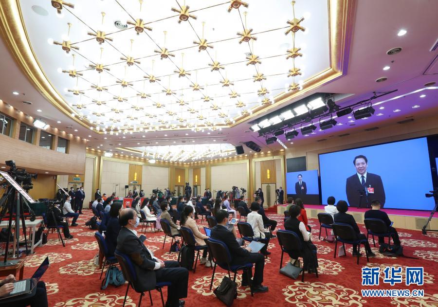 3月10日,全國政協(xié)十三屆四次會議第三場“委員通道”采訪活動在北京人民大會堂新聞發(fā)布廳舉行。這是全國政協(xié)委員潘新洋通過網(wǎng)絡(luò)視頻方式接受媒體采訪。新華社記者 李賀 攝