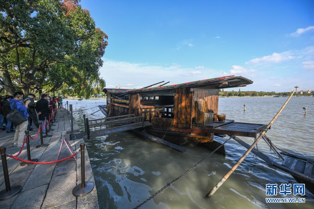 ??吭谡憬闻d南湖湖心島的南湖紅船(2020年10月27日攝)。新華社記者 徐昱 攝
