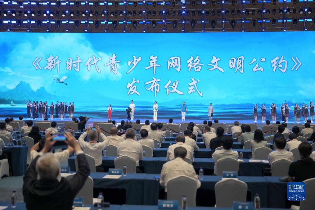 7月18日,2023年中國網(wǎng)絡(luò)文明大會主論壇發(fā)布《新時(shí)代青少年網(wǎng)絡(luò)文明公約》。新華社記者林善傳攝