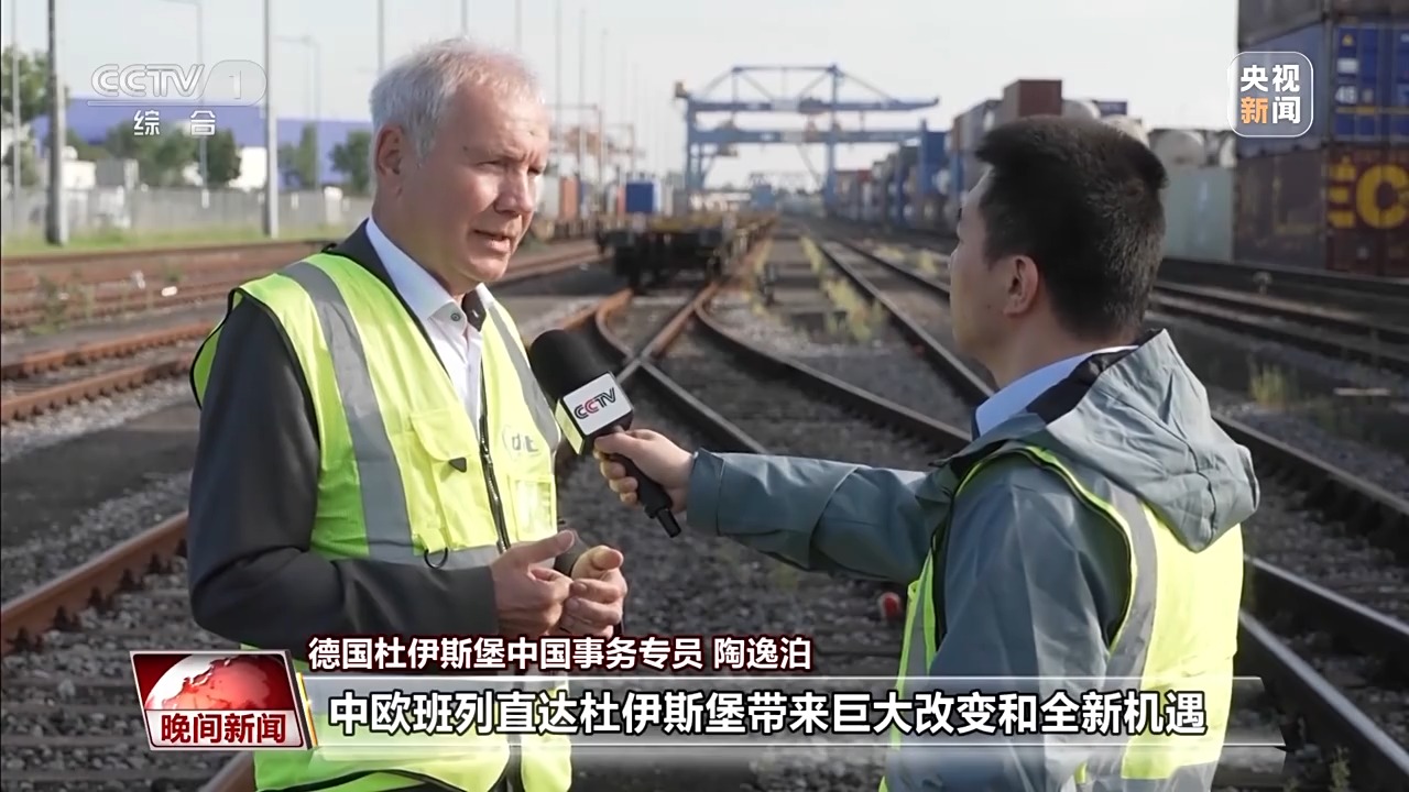 德國杜伊斯堡中國事務(wù)專員 陶逸泊:中歐班列直達(dá)杜伊斯堡帶來巨大改變和全新機(jī)遇。這條線路綿延上萬公里,從中國出發(fā)穿越6個(gè)國家,抵達(dá)我們這里。一切工作能在十幾天內(nèi)完成,非常了不起。
